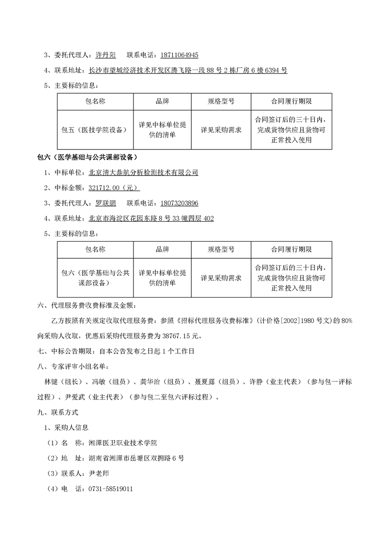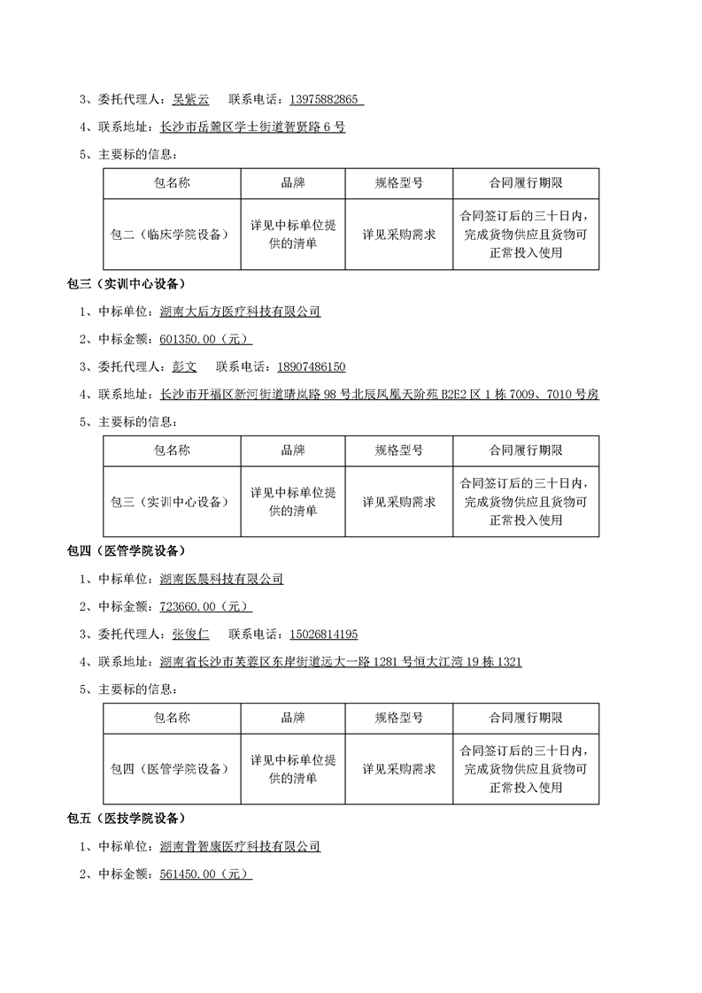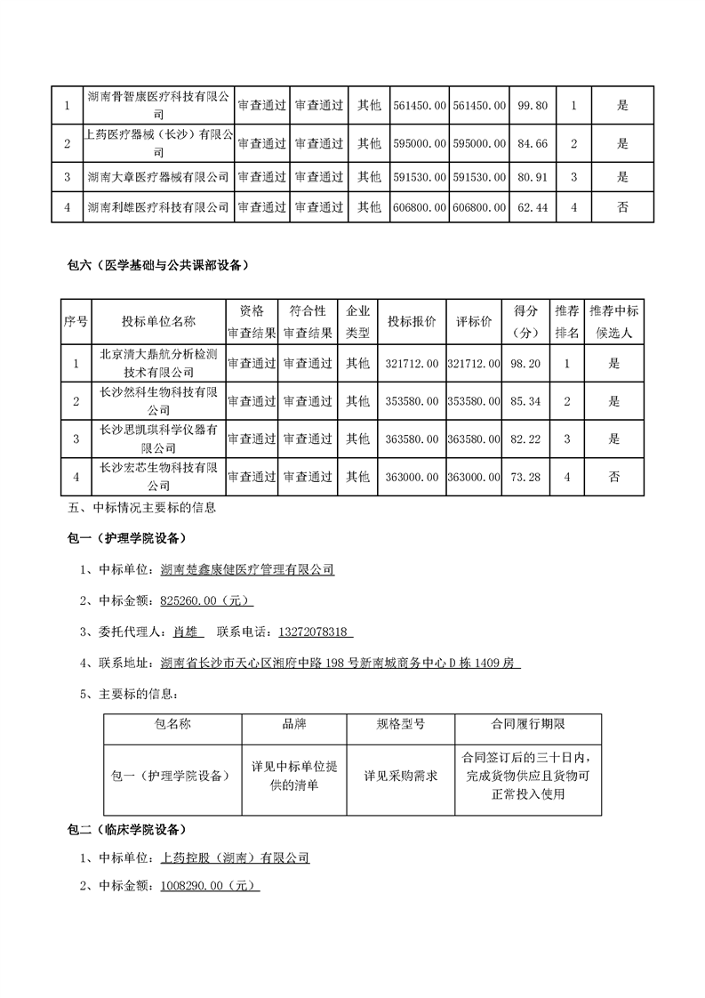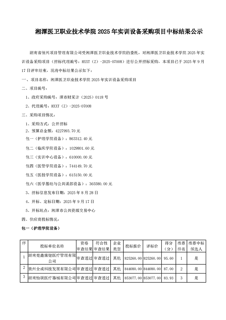 湘潭医卫职业技术学院2025年实训设备采购项目中标结果公示