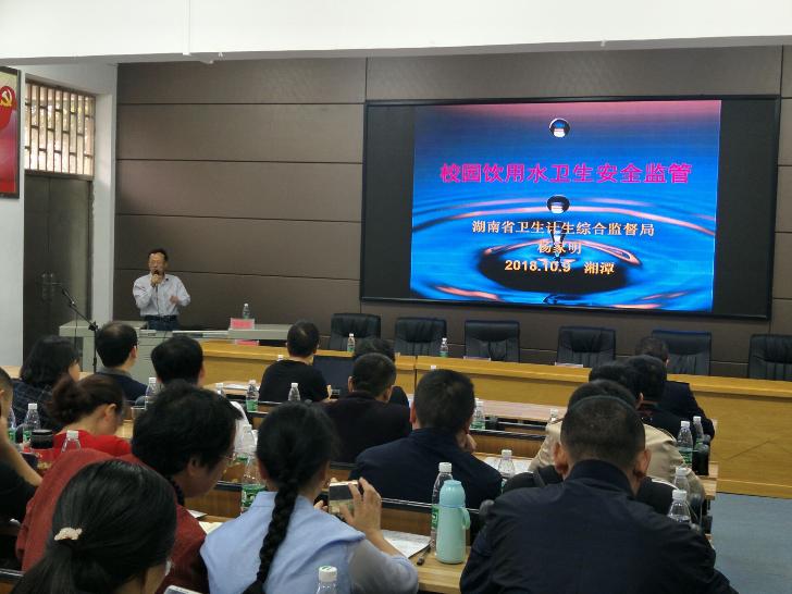 10月9日,我校与湘潭市卫生计生综合监督执法局组织举办了湘潭市学校卫生法律法规培训班暨启动“近视防控进校园”活动,全市高校、中小学校分管传染病防控、生活饮用水卫生的后勤处长、后勤主任、校医、卫生监督员等相关人员120人参加培训,培训班聘请国家级专家、省卫生计生综合监督执法局杨家明处长作专题讲座,市卫生计生综合监督执法局局长王浩主持培训。