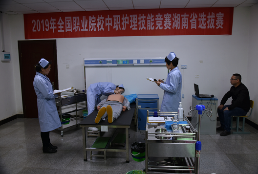 2019年全国职业院校技能大赛将于5月举行,为了进一步提升我省参赛选手的竞赛水平,争取在全国大赛中取得更好的成绩,湖南省教育厅继续采取赛前全省集训选拔的方式,确保选出最优秀的选手,并举全省之力集中训练,以期达到最好的水平。中职组护理技能竞赛项目的集训与选拔工作我校承担,有来自全省5所中高职院校的7名学生参加。7名学生需要经过第一阶段的集训和选拔后,确定5名参加全国竞赛的选手,继续进行第二阶段的集训,直至参加国赛。