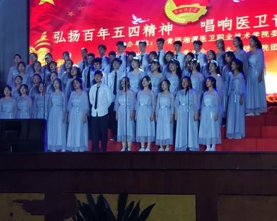 为了纪念100周年五四精神,促进校园文化建设,校团委于2019年5月7日在三楼大礼堂举行“弘扬百年五四精神,唱响医卫青年颂歌”大学生合唱比赛,护理学院第一团总支58名同学参加此次比赛。