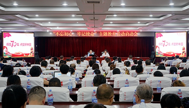 本网讯 9月10日,学校庆祝新中国成立70周年主题宣讲报告会暨“不忘初心、牢记使命”主题教育活动启动会召开。全体党委委员、副科级以上干部、教师代表近240余人参会。校党委书记刘建强作主题报告,校长廖晓燕主持会议。