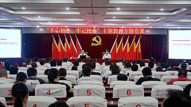 本网讯 根据校“不忘初心、牢记使命”主题教育总体部署安排,9月29日下午,校党委书记刘建强在一楼报告厅上主题教育专题党课。校党委副书记、校长廖晓燕主持。全体校党委委员、副科级以上干部、全体党员及附属医院各总支、支部委员参加学习。