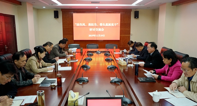 本网讯 11月19日上午,我校在九楼会议室举行 “不忘初心、牢记使命”主题教育第三次专题研讨。研讨会紧紧围绕“改作风、勇担当、带头真抓实干”主题开展。党委书记刘建强主持研讨会。全体党委委员参加会议。