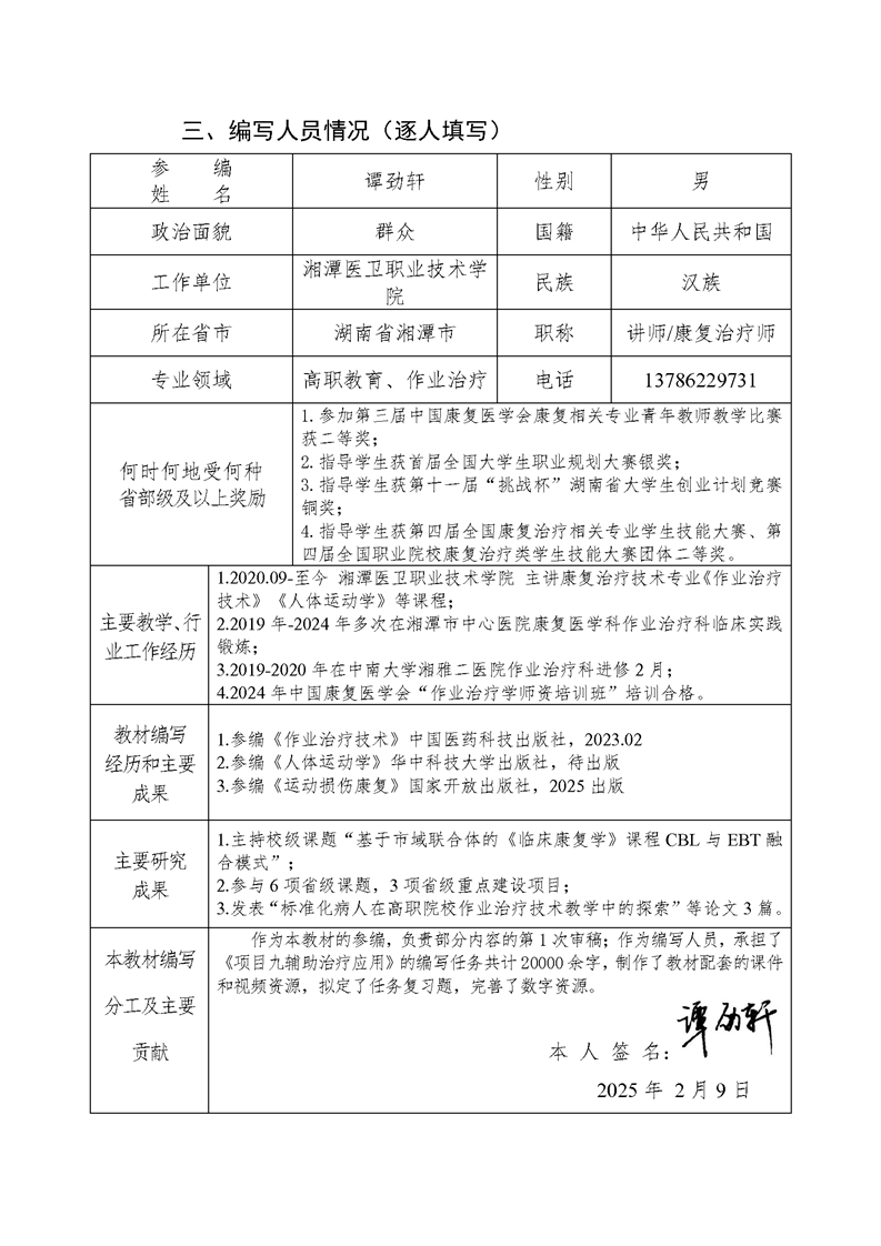 首页 > 医学技术学院 > 《作业治疗技术》教材申报