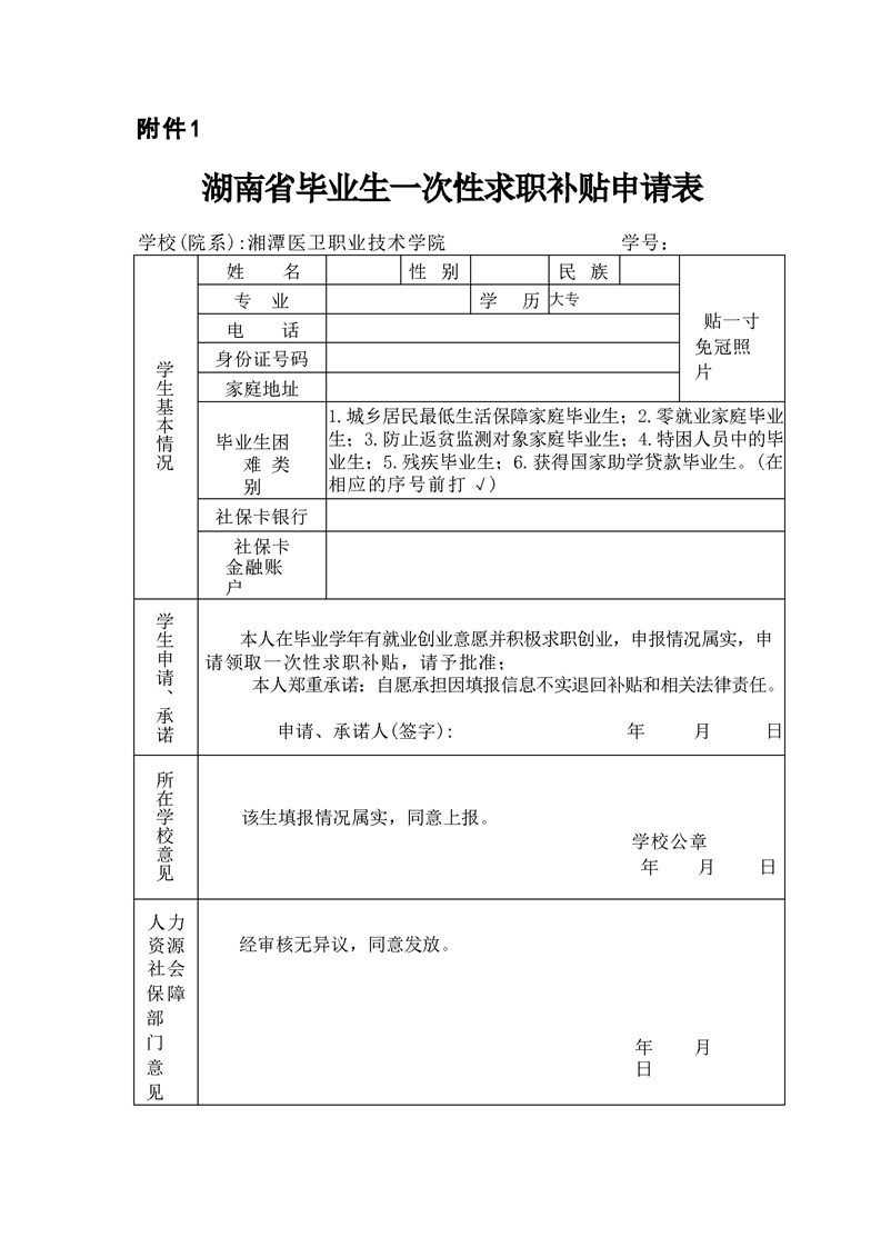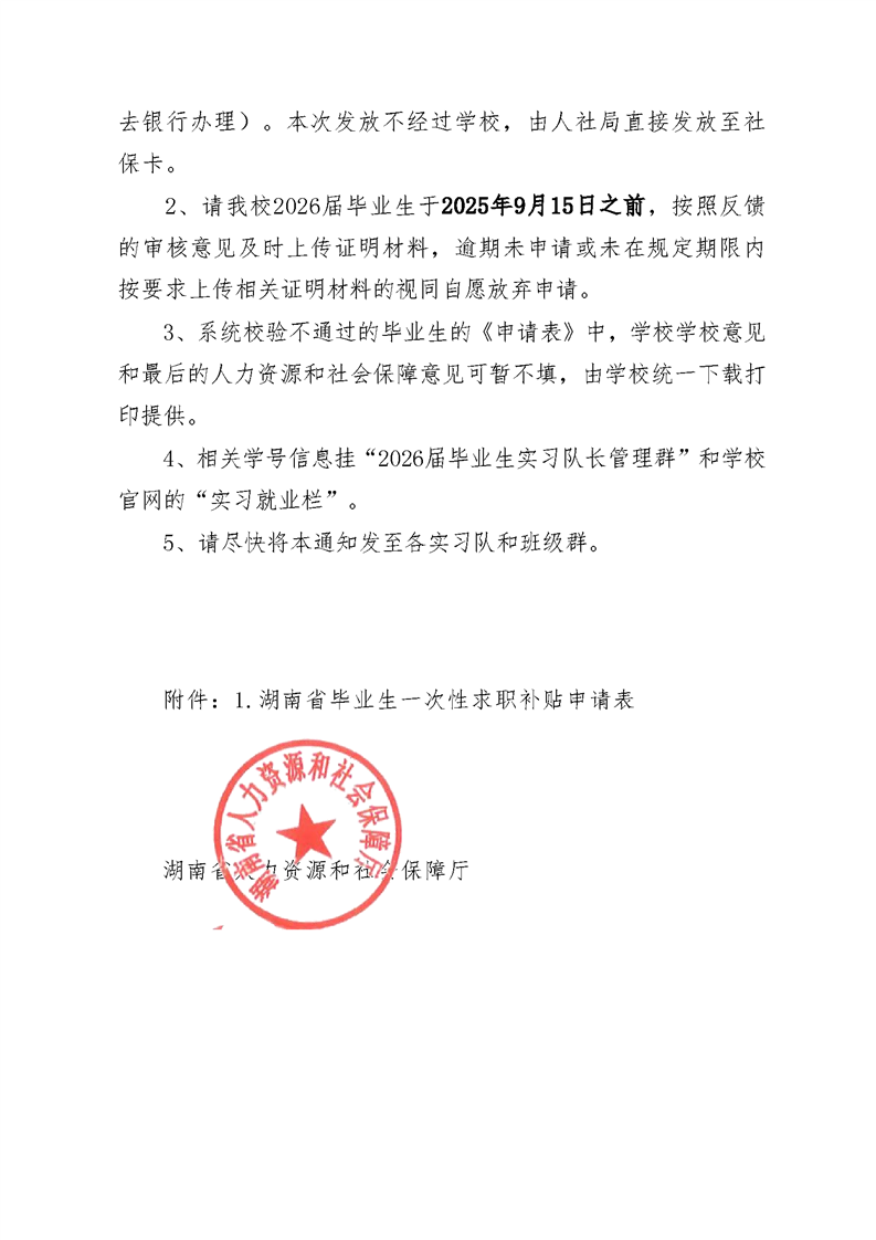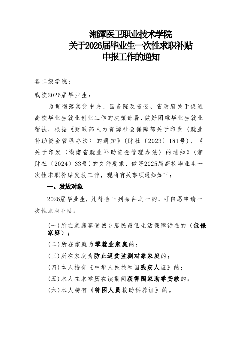 湘潭医卫职业技术学院 关于2026届毕业生一次性求职补贴申报工作的通知
