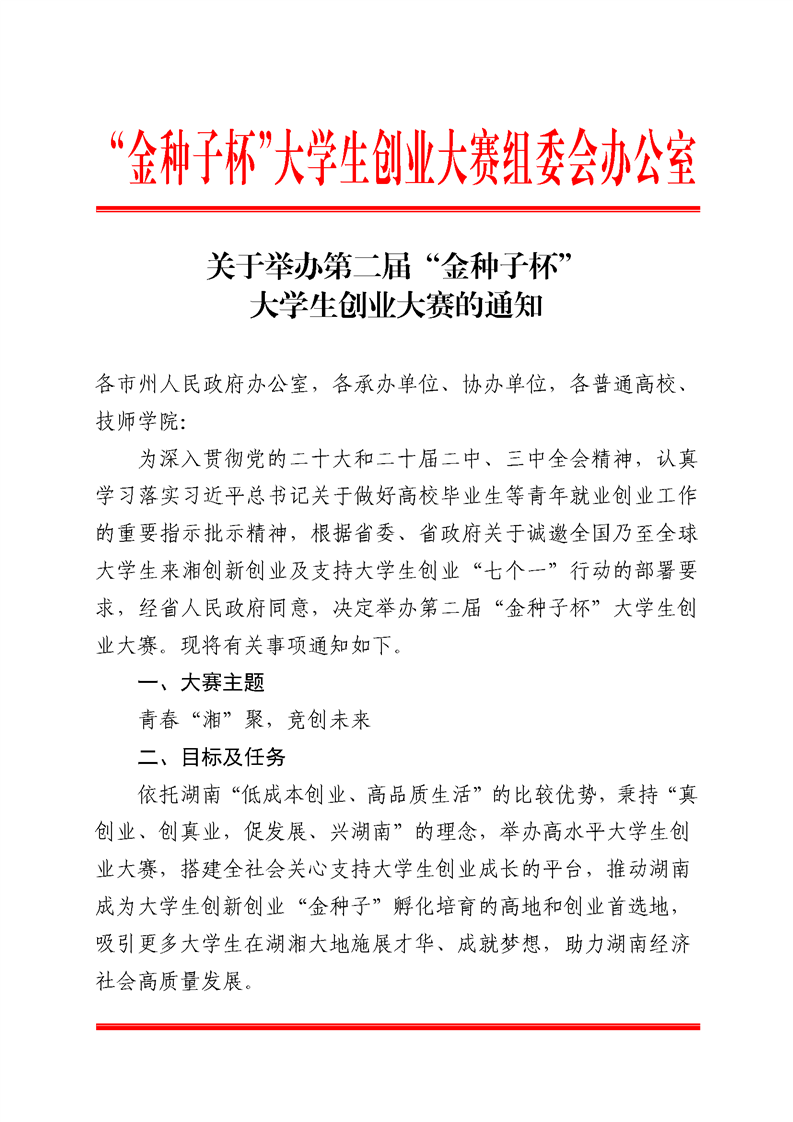 关于举办第二届“金种子杯”大学生创业大赛的通知正文