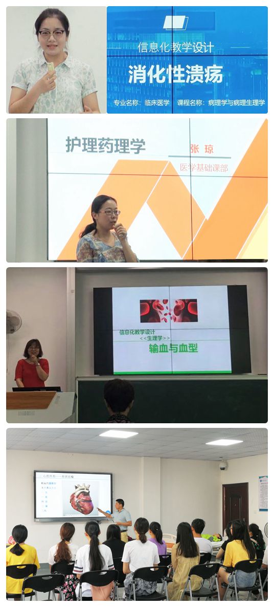 为推进信息化教学工作与课程教学改革,促进信息技术与教育教学深度融合,提高教师教育技术应用能力和信息化教学水平。引导广大教师不断提升教学设计和教学实施水平,提高课程教学质量,6月10日,学校举行了2018年信息化教学设计、信息化课堂教学以及说课竞赛,比赛地点设置在护理楼204(信息化教学设计、说课竞)和临床学院104教室(信息化课堂教学)。我课部艾卫敏、宋志勇、刘婷、张琼四位老师参加了此次比赛。