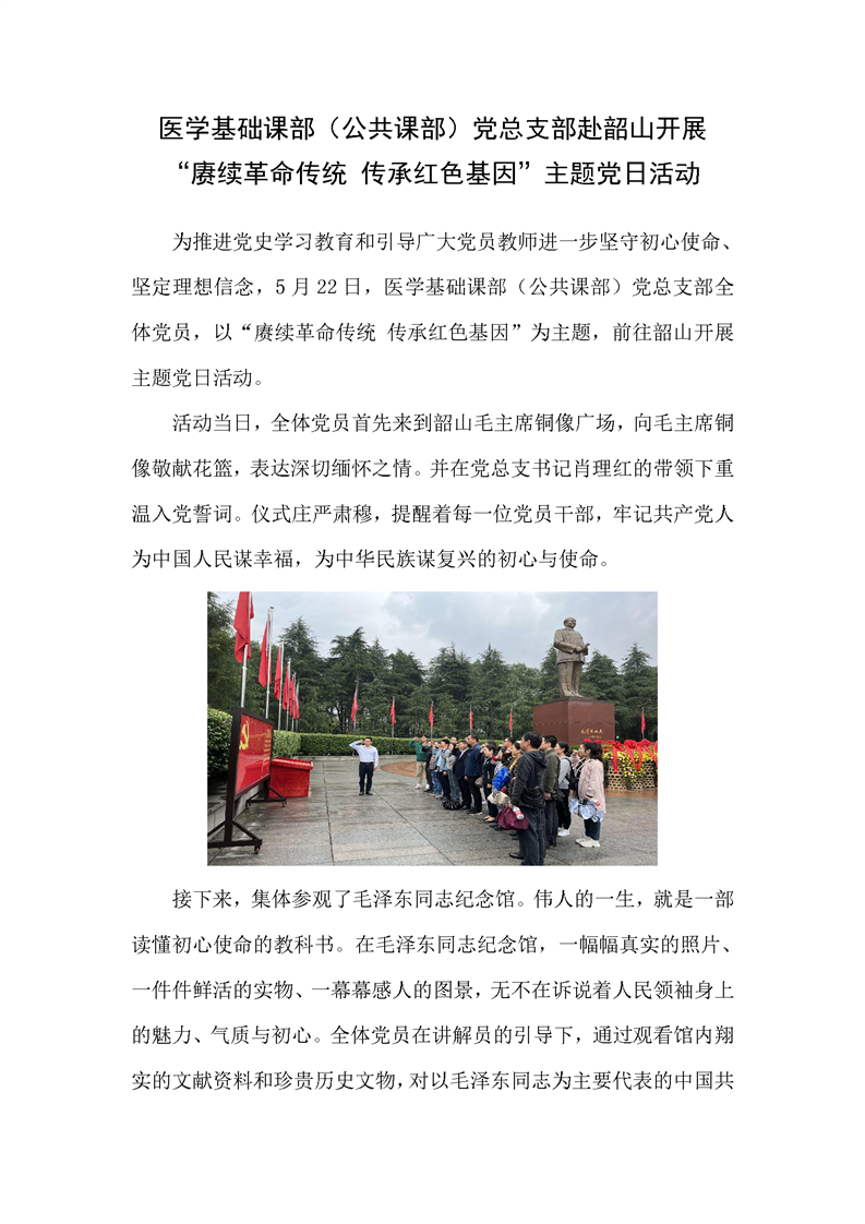 医学基础课部(公共课部)党总支部赴韶山开展 “赓续革命传统 传承红色基因”主题党日活动