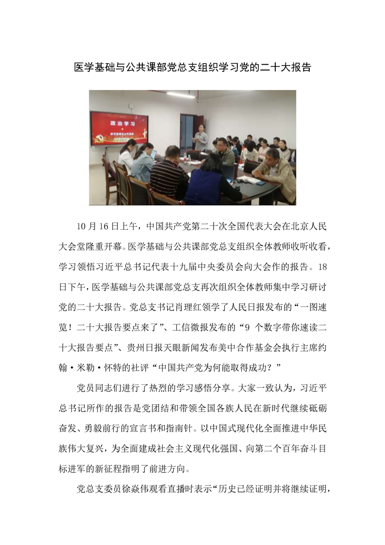 医学基础与公共课部党总支组织学习党的二十大报告