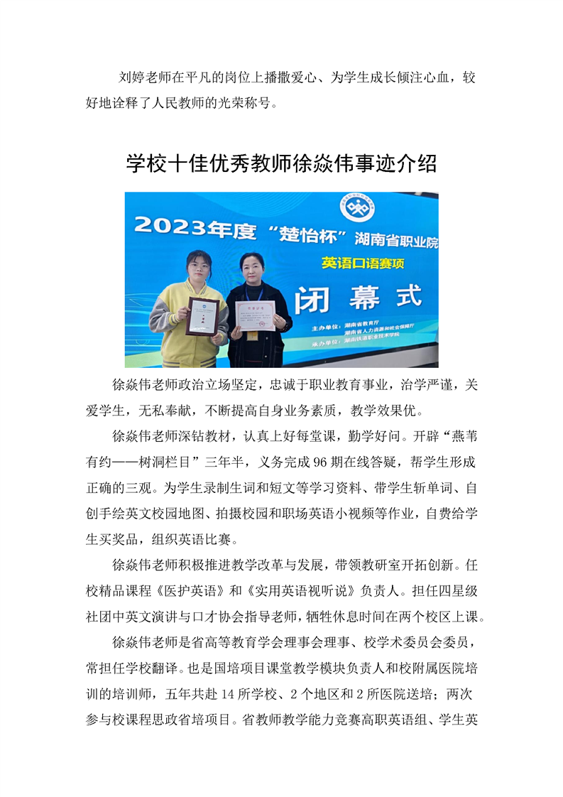 医学基础与公共课部2023年度师德师风先进事迹介绍