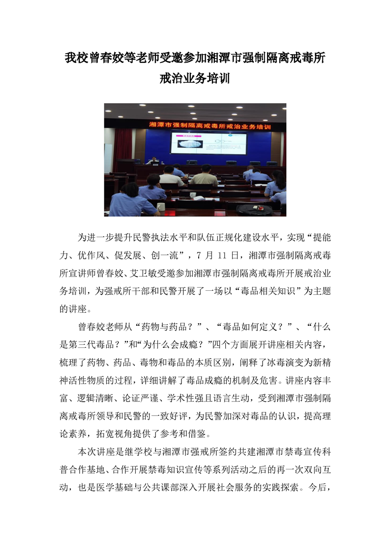 我校曾春姣等老师受邀参加湘潭市强制隔离戒毒所戒治业务培训