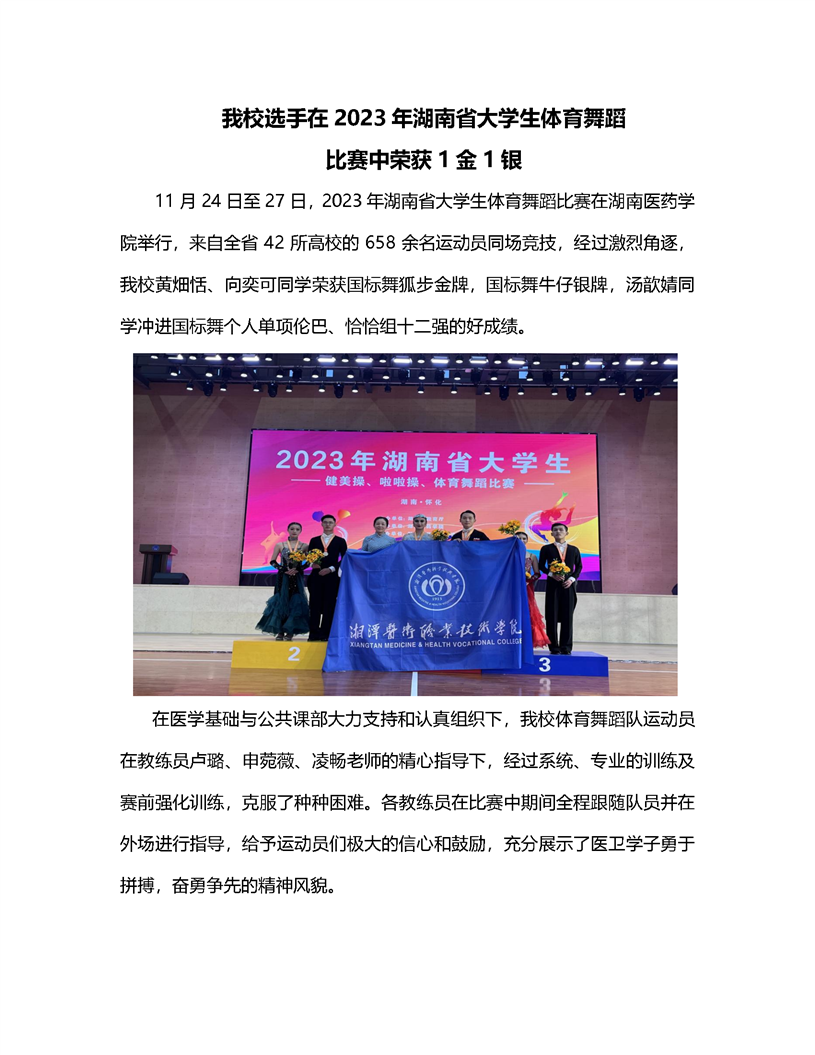 我校选手在2023年湖南省大学生体育舞蹈 比赛中荣获1金1银
