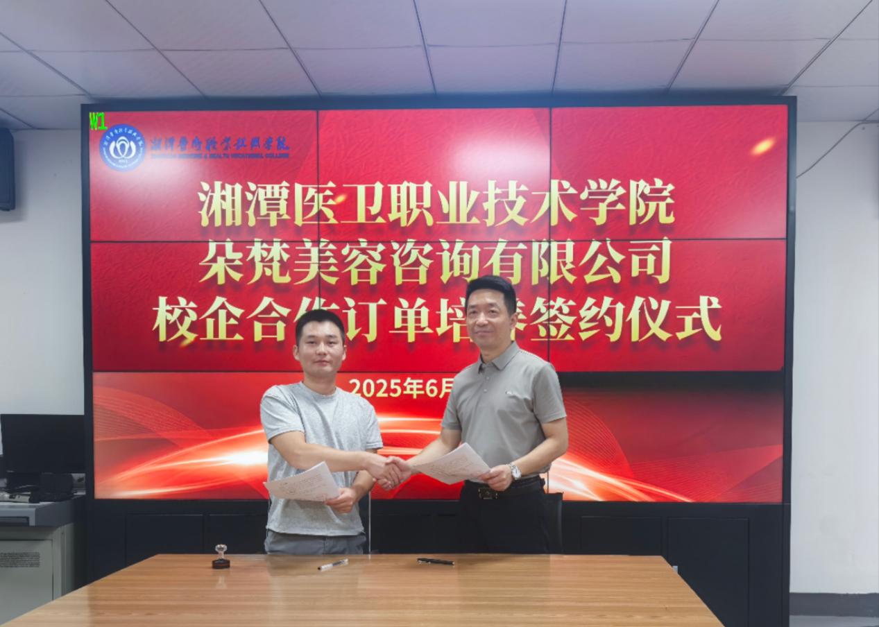 2025617日,我院医学美容技术专业与长沙市开福区朵梵美容咨询有限公司正式达成战略合作。双方以“共建特色专业、共育行业精英”为核心,通过“证书考核+师资培训+实习就业+赛事承办+实训建设”五位一体的创新协作模式,致力打造中南地区医学美容技术领域产教融合新标杆,为产业升级注入高质量人才动能。