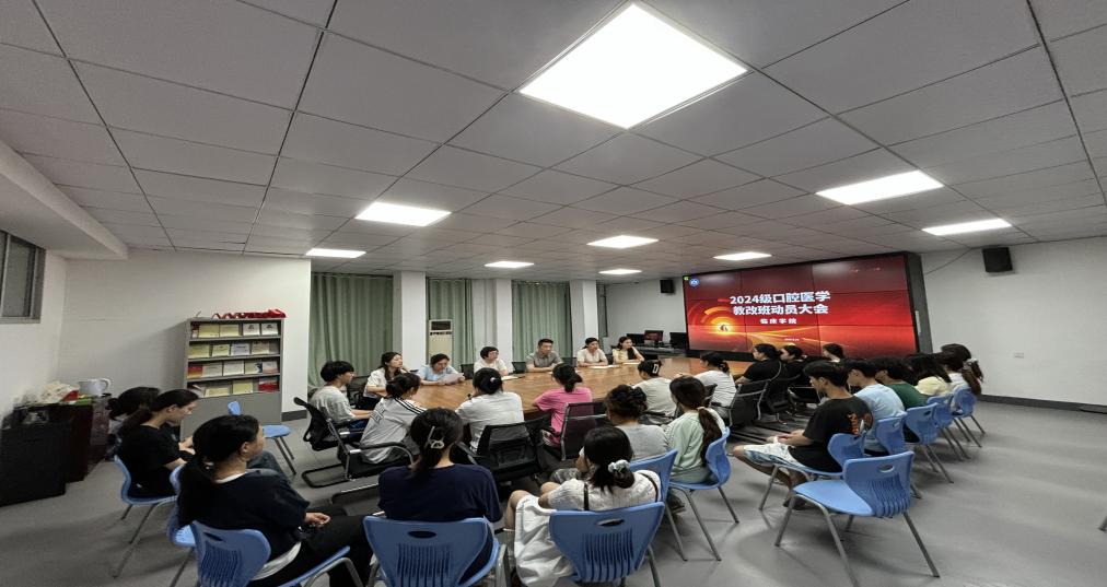 为深化教育教学改革,创新人才培养模式,临床学院于624日在中控室举行2024级口腔医学专业教改班动员大会,标志着口腔医学教学改革开启新征程。临床学院院长郭凌志、副院长阳娜、党总支副书记凌畅、班主任张敏、辅导员黄染林、文静及2024级口腔医学教改班全体学生参会,