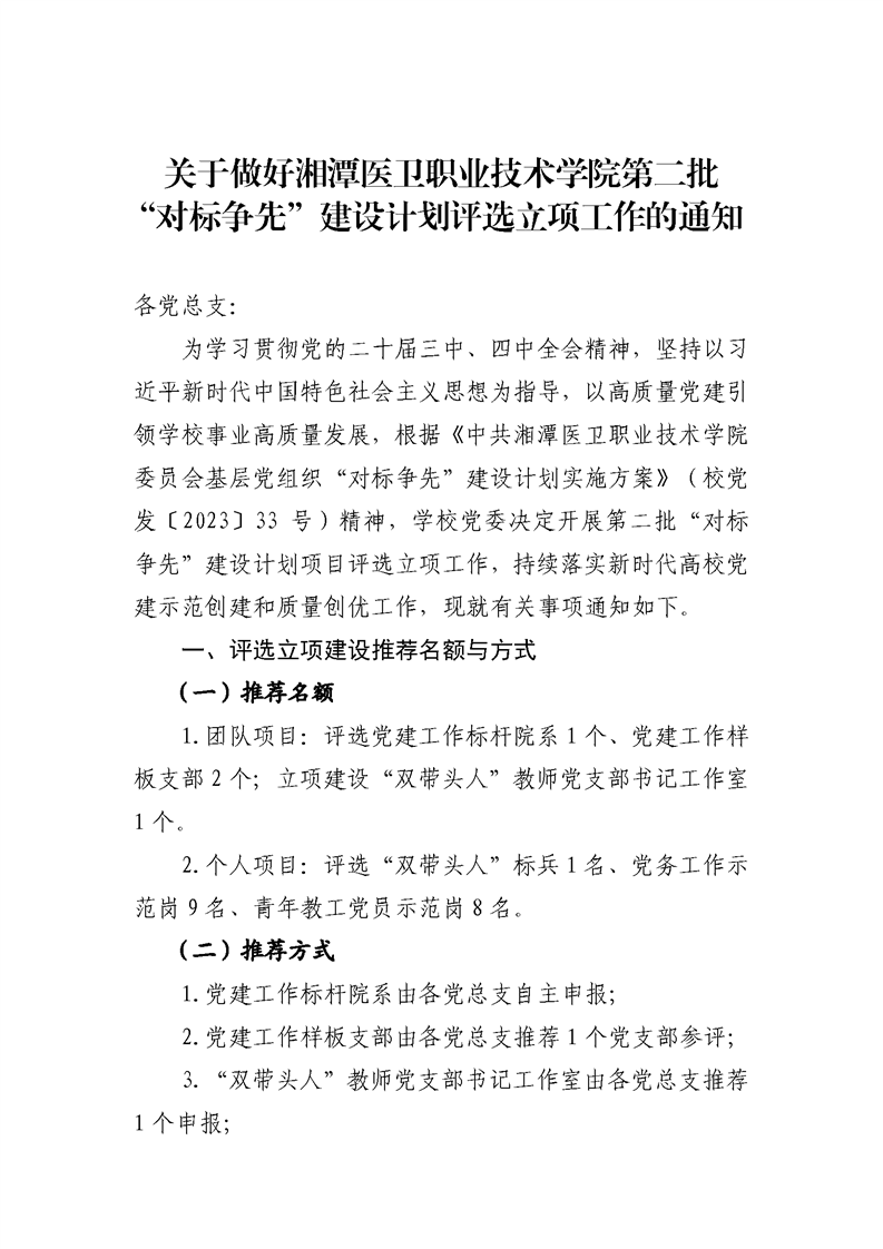 关于做好湘潭医卫职业技术学院第二批 “对标争先”建设计划评选立项工作的通知